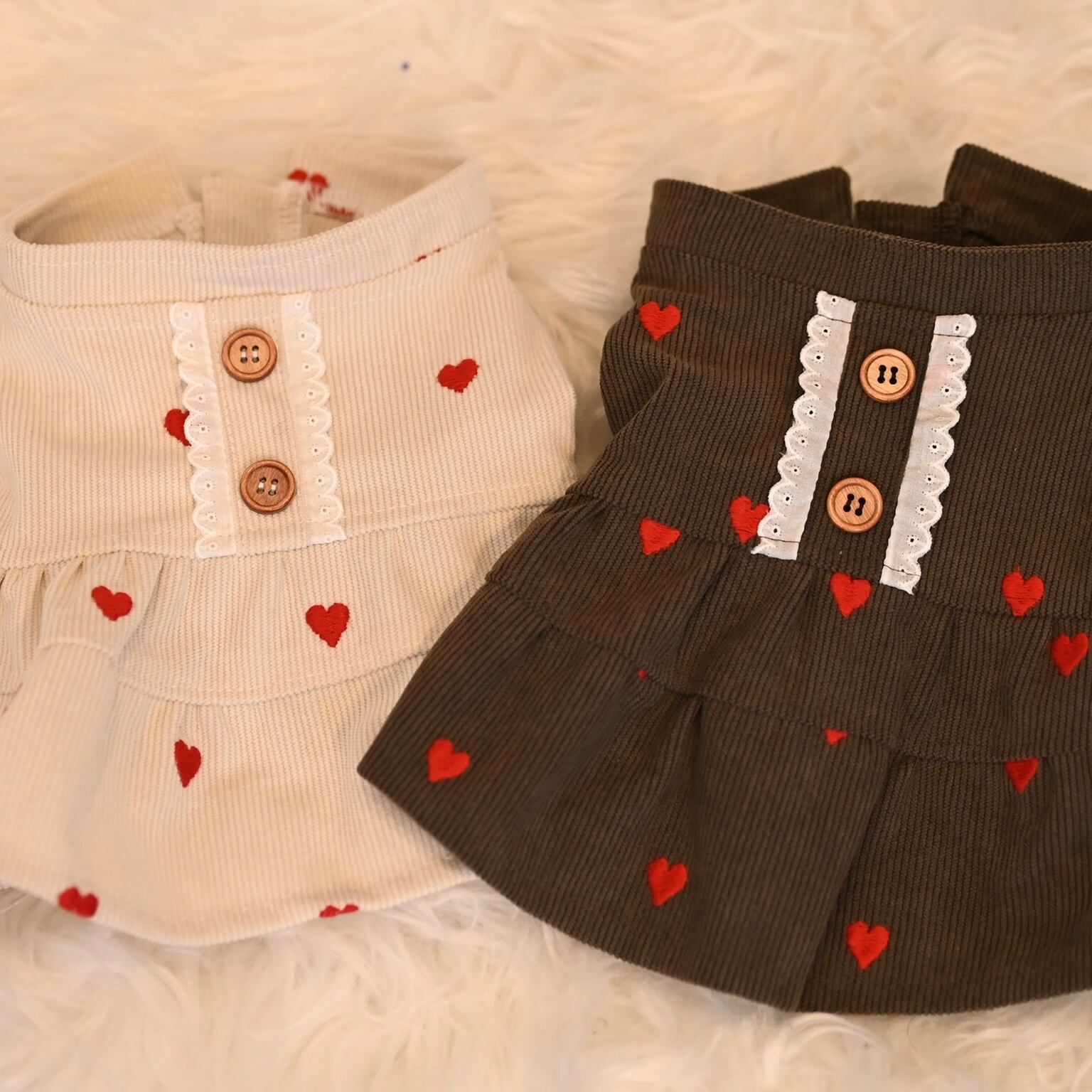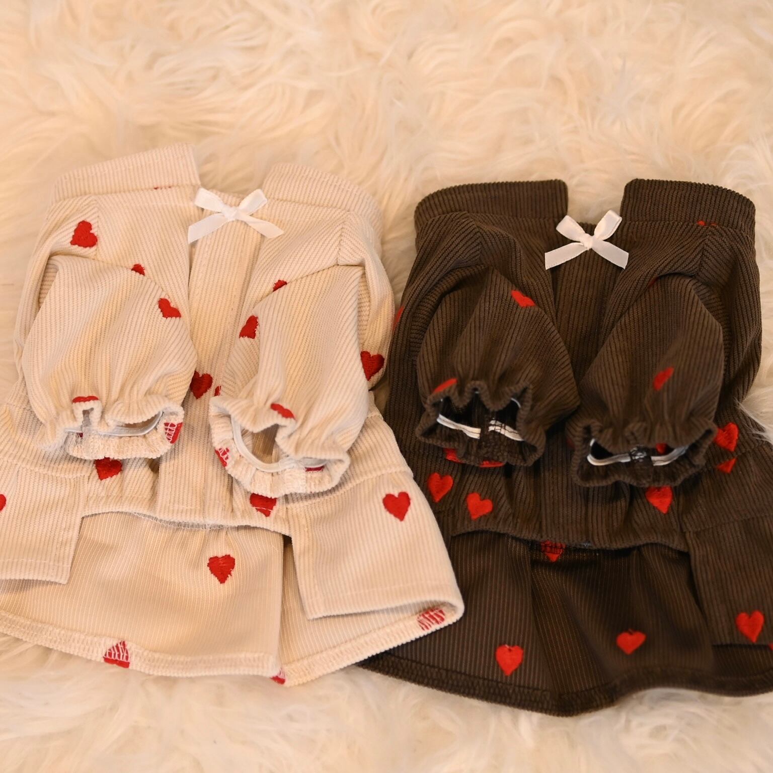 秋冬コーデには欠かせないコーデュロイ生地を使用した、ハート刺繍がかわいいワンピースです。