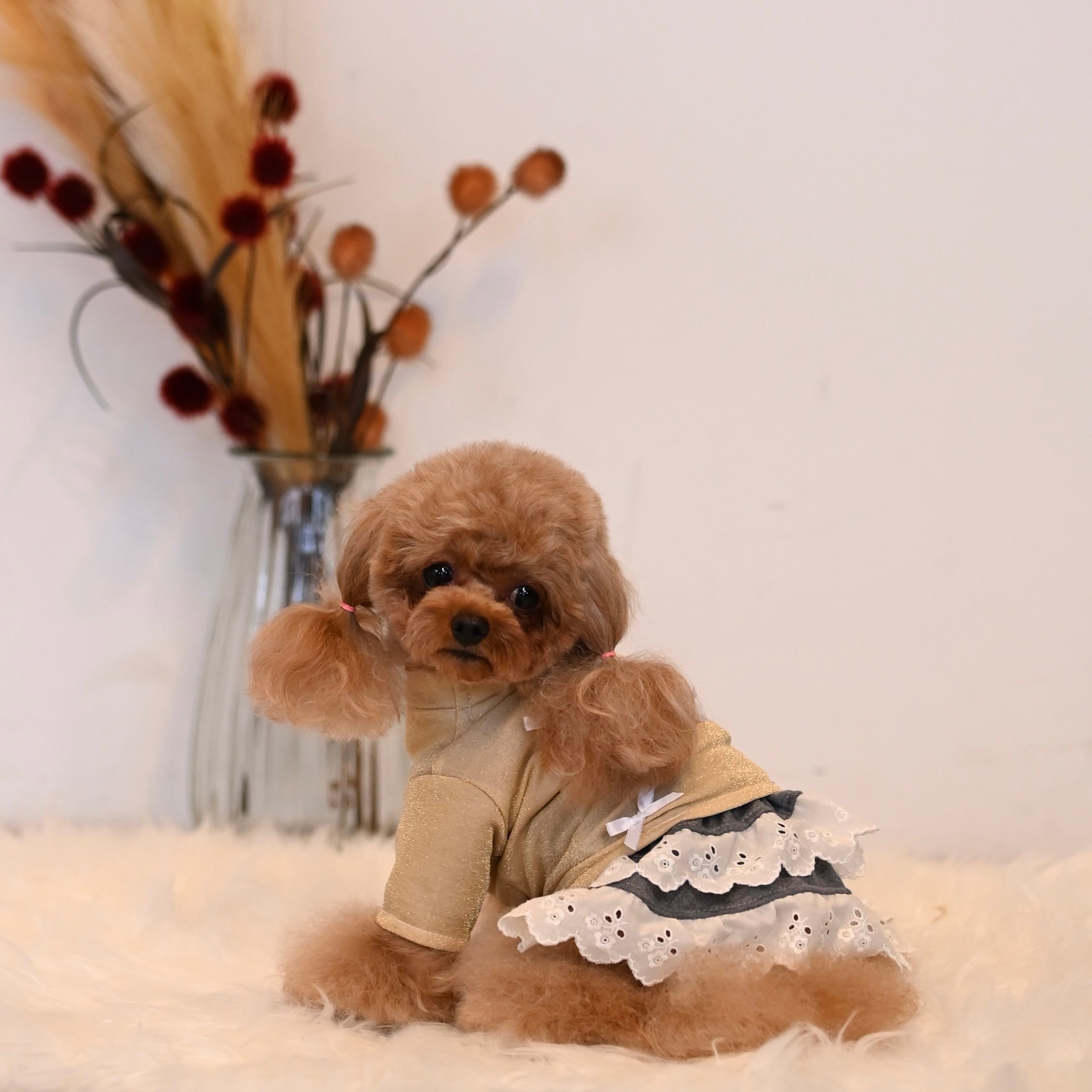 丈は短めになっているのでスカートと合わせたり、オパンツカットのわんちゃんにもおすすめの商品です◎