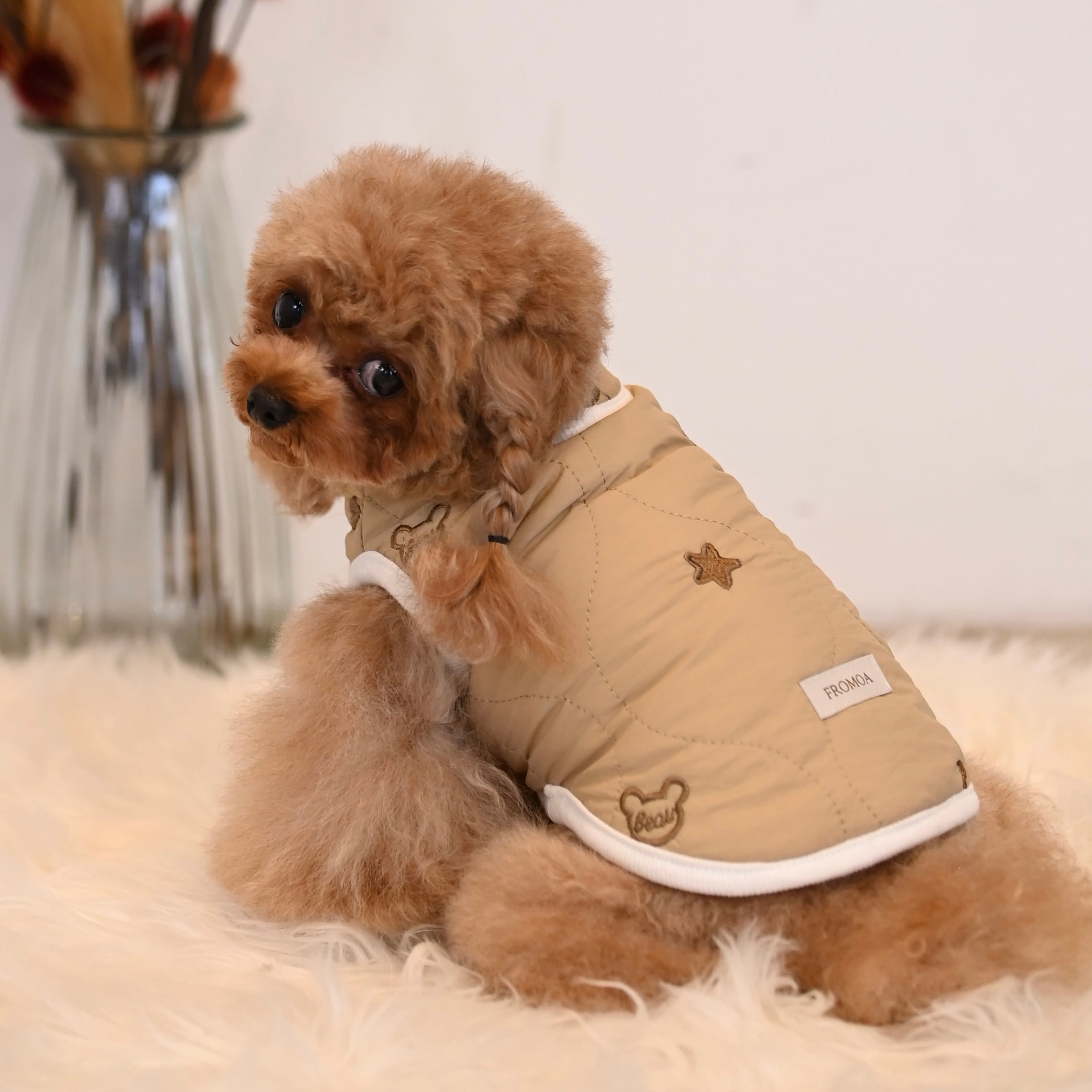 裏起毛で一枚で温かく、ベスト型なので長袖の上に羽織っても可愛いです◎