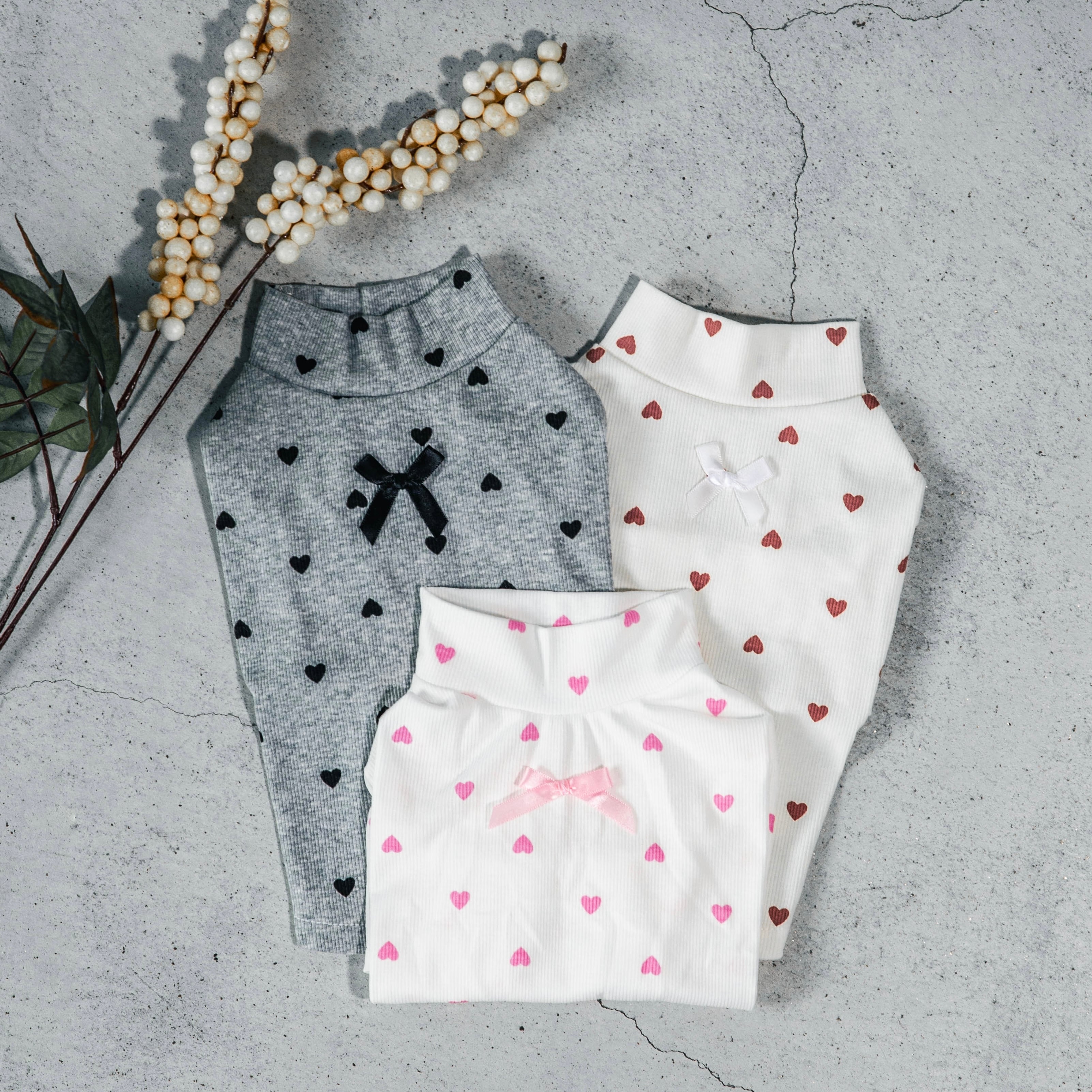 ハートとリボンの組み合わせで甘さ全開のアイテム。伸縮性の優れた柔らかく薄手の生地を使用しています。重ね着との相性抜群。