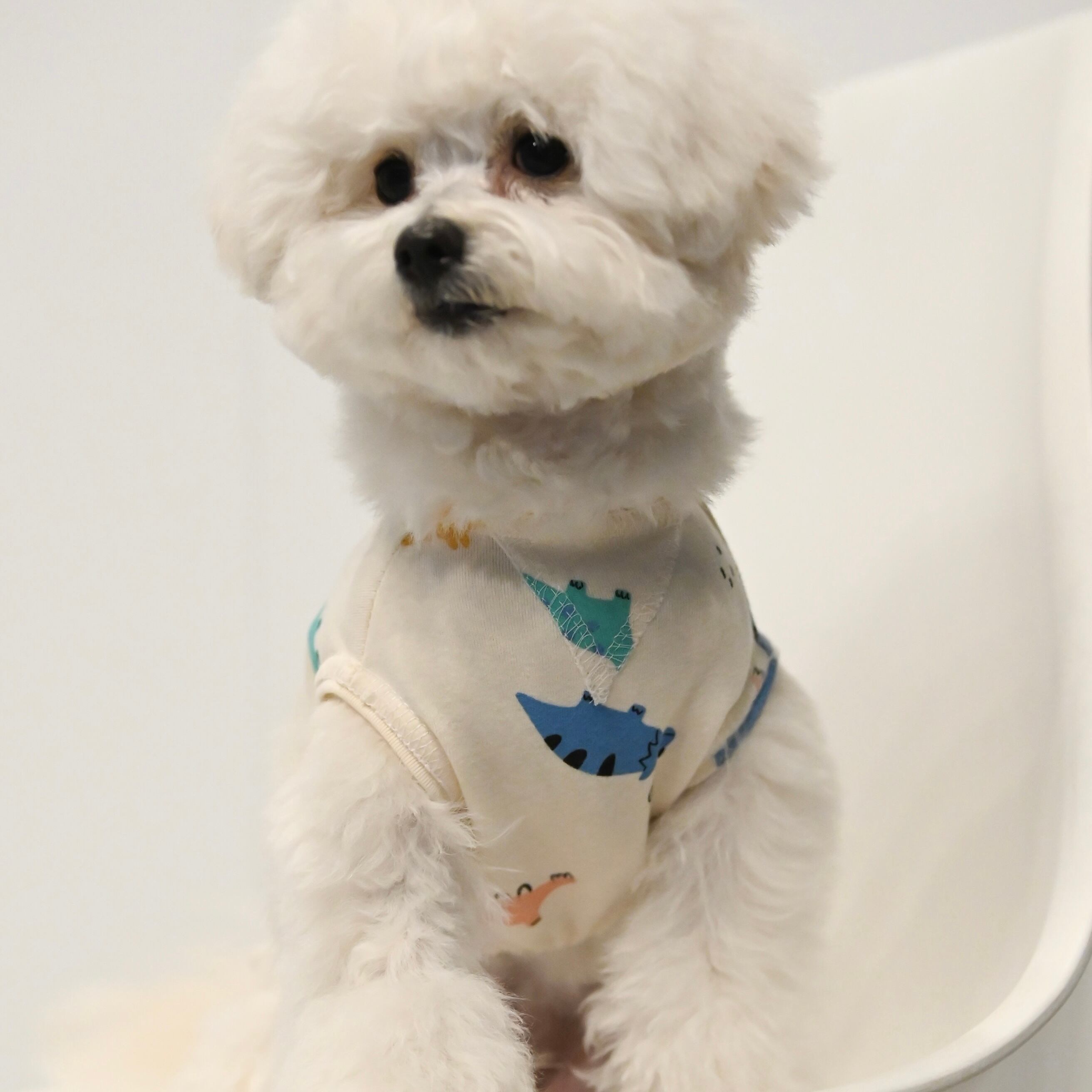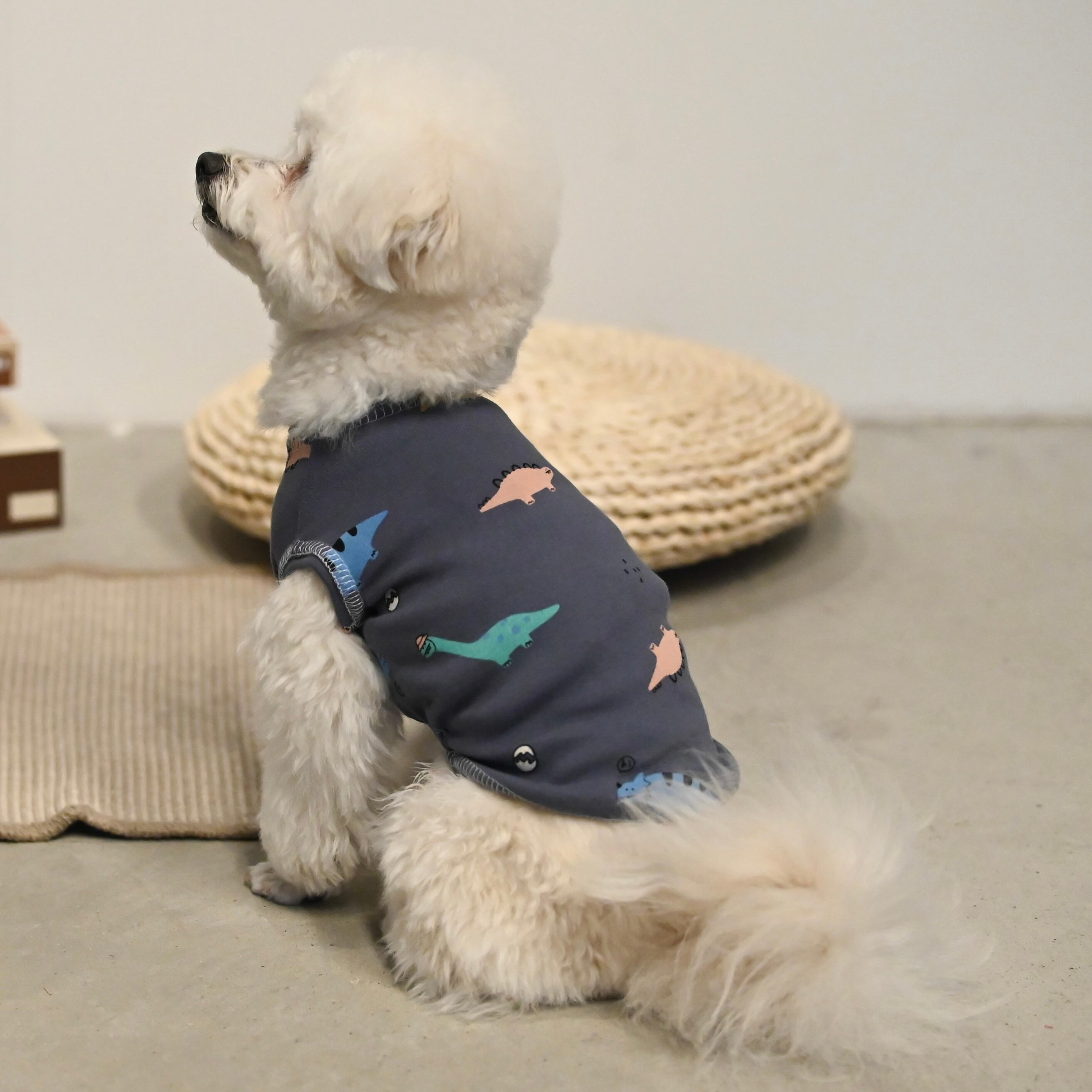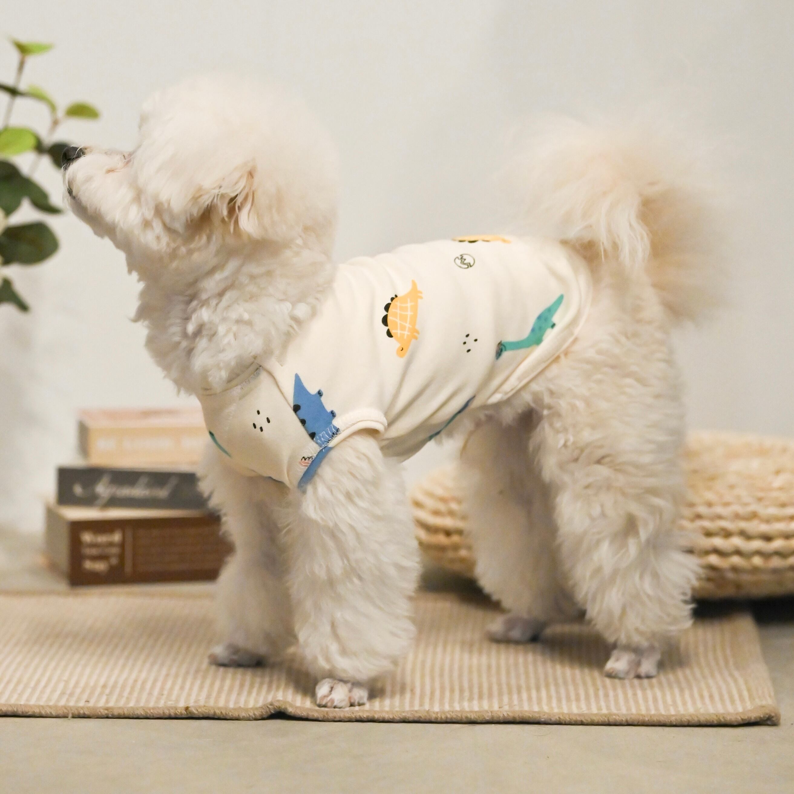 ステッチがポイントの恐竜がいっぱいのTシャツです。
